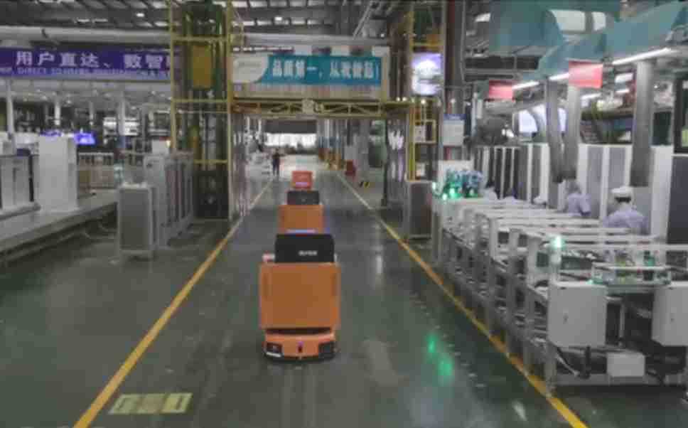 为车载冰箱物流配送打造的智能解决方案,,包含产中物流通过潜伏举升AMR搬运至线边,,,,产后成品物流智能仓储,,,流程包含产中物流智能齐套入库,,线边安灯叫料AMR智能配送至线边,,,,成品入库、、、、出库,,,通过无人堆高车机器人,,,智能仓储管理替代人工作业管理,,,实现更高存储、、更高效率、、更具柔性化的解决方案。。。