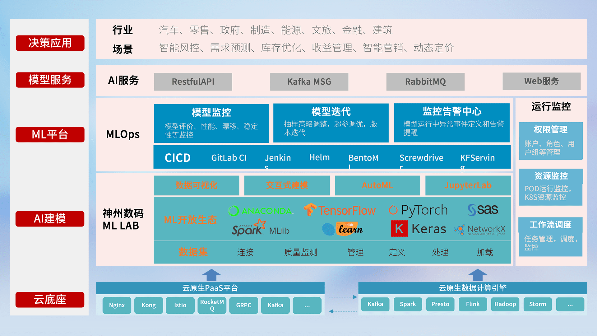 数据+模型双引擎驱动,,面向智能服务场景,,,,快速灵活利用AI技术,,,支持业务决策,,,助力企业智能化转型破局。。。
